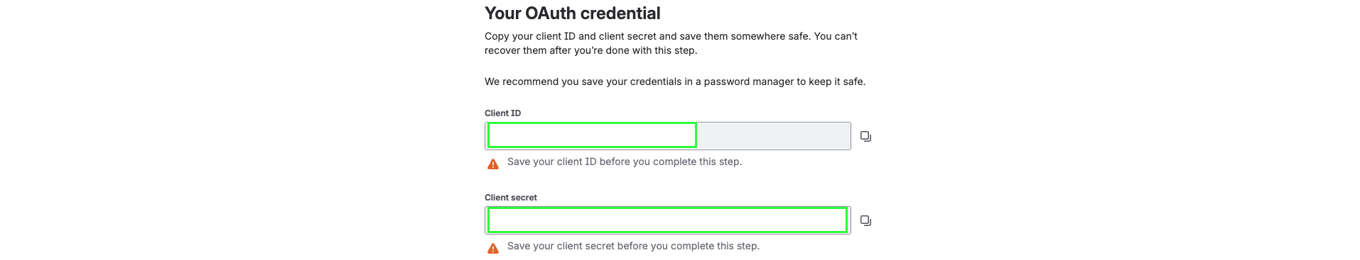 - Copy your Client ID and Client Secret and save them somewhere safe. You can’t recover them after you create the credential.