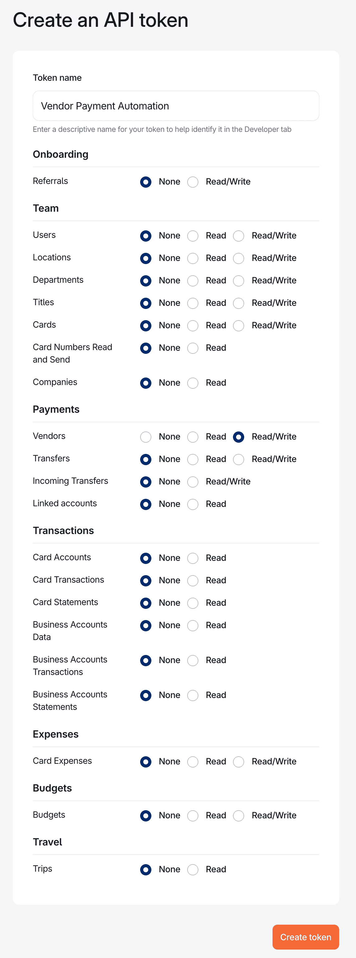 To authenticate with Brex (API Key), you will need:- API Token - A key that grants Nango permission to interact with Brex’s API resources and services.