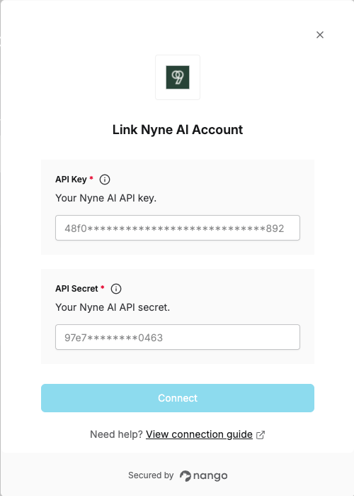 This guide explains how to obtain your API Key and API Secret for Nyne AI.