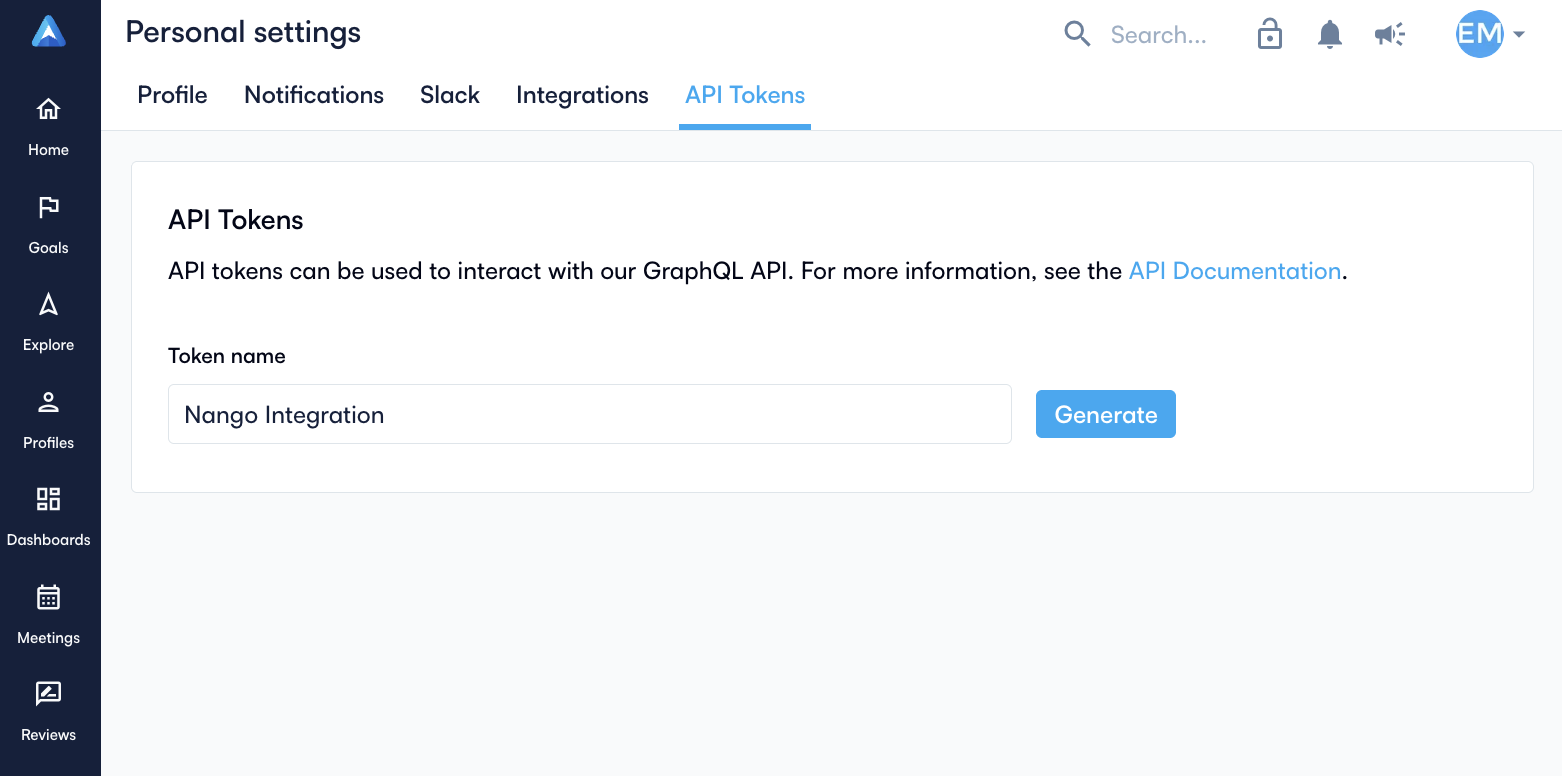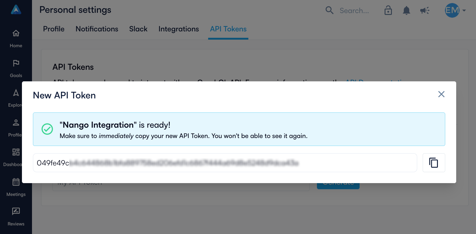 - Give your token a descriptive name (e.g., “Nango Integration”)