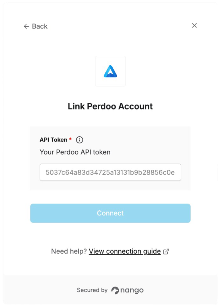 To authenticate with Perdoo, you will need:- API Token - A 64-character hexadecimal key that grants secure access to the Perdoo API, enabling authorized applications to interact with your OKRs, KPIs, and organizational data.
