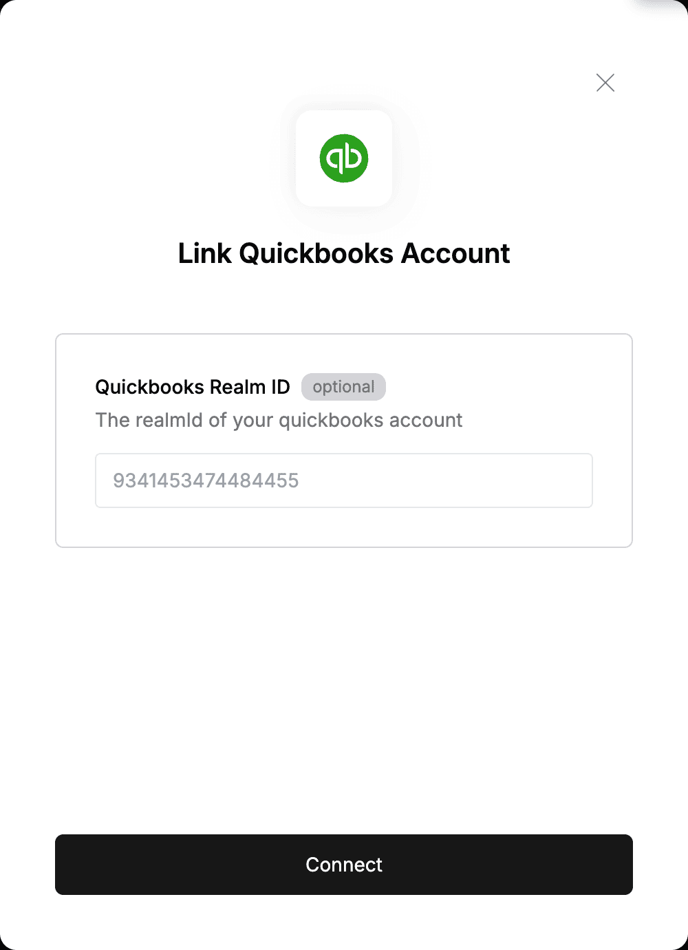 Step 2: Enter your Realm ID in the Connect UI