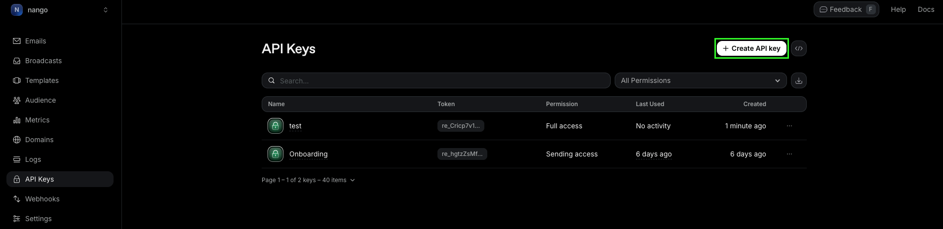 - Log in to your Resend account and go to the API Keys page.