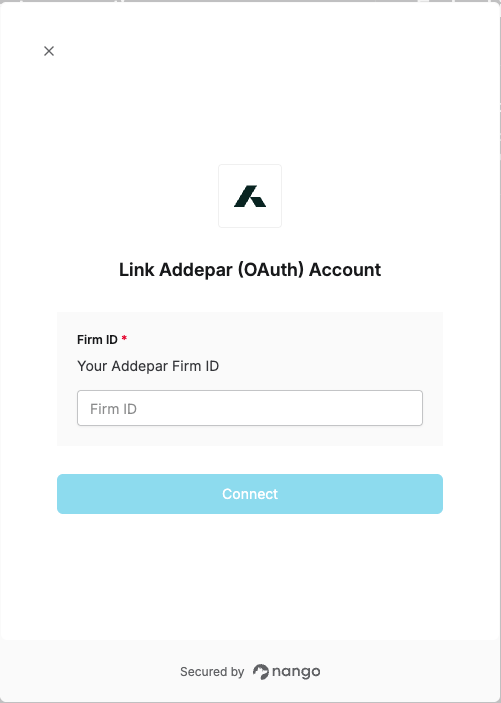 To authenticate with Addepar, you will need:- Firm ID – A unique identifier for your Addepar firm, found in the API URL.