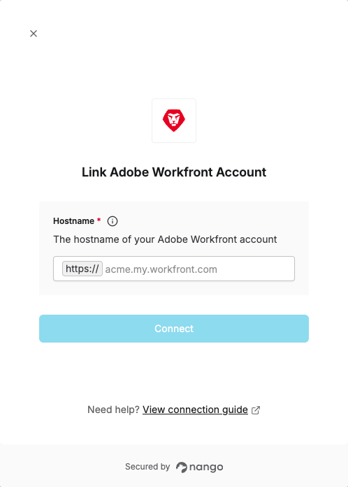 To authenticate with Adobe Workfront, you will need:- Hostname - Your organization’s Adobe Workfront domain URL, which is used for API calls.