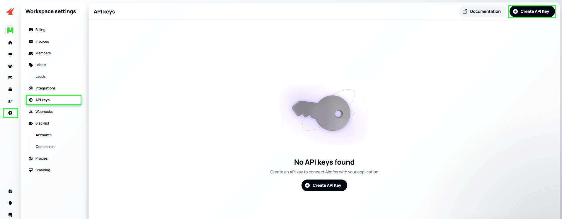 - Navigate to Settings → API Keys, then click Create API Key.