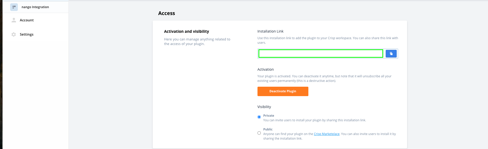 1. Finally, install the plugin on all websites you need to use it for (using the private install link, provided in the Settings section under Access).