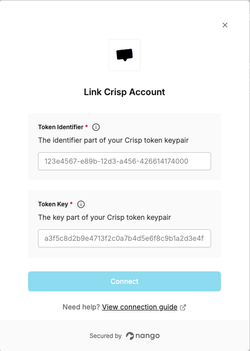 1. Token Identifier - The identifier part of your Crisp token keypair that authenticates your requests.