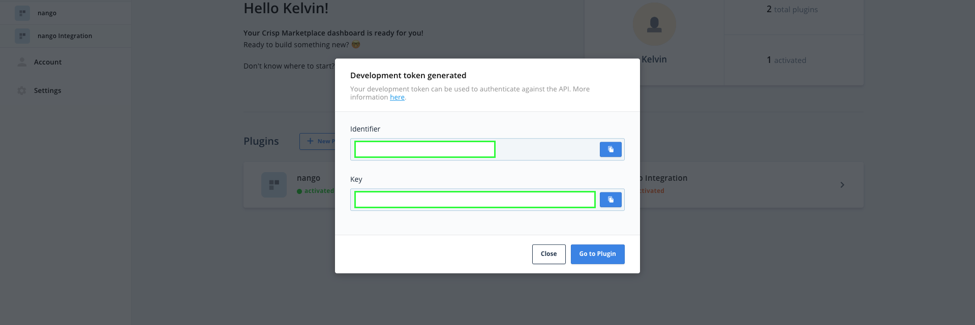 2. Token Key - The key part of your Crisp token keypair that authenticates your requests.