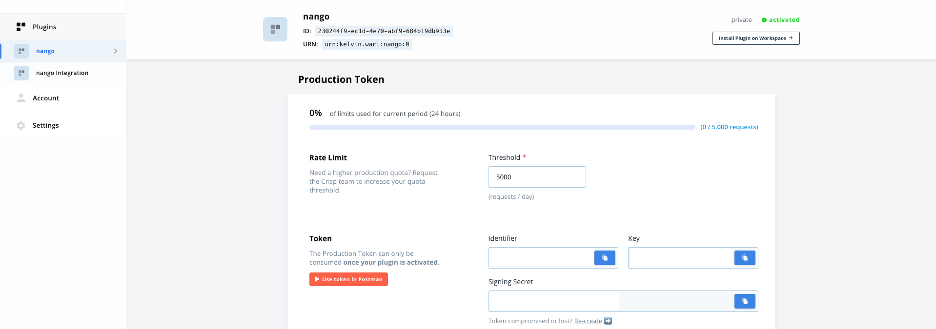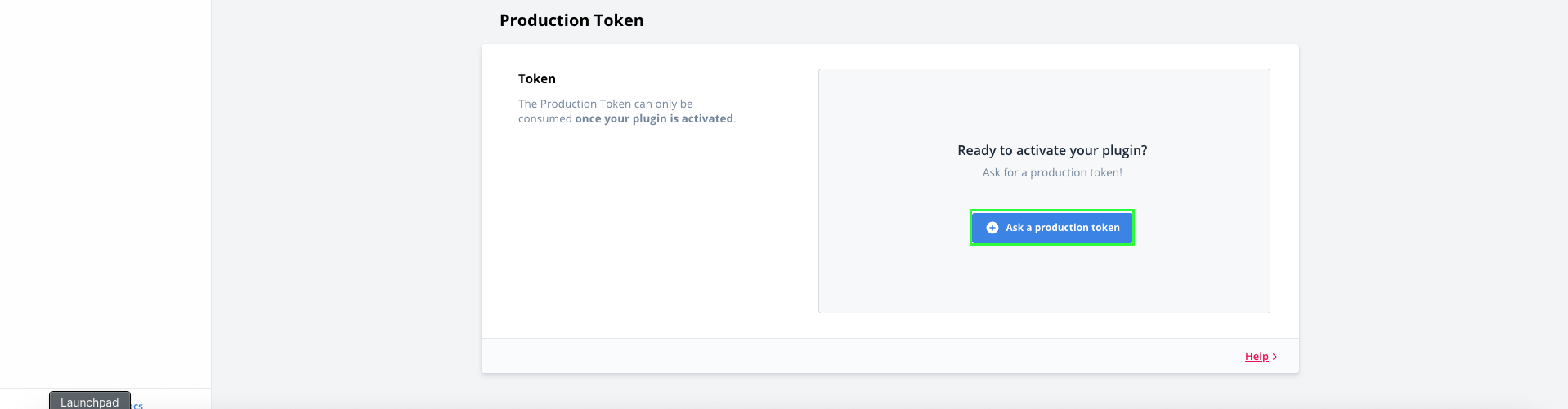 1. On the plugin page, go to the Tokens tab and scroll down to Production.