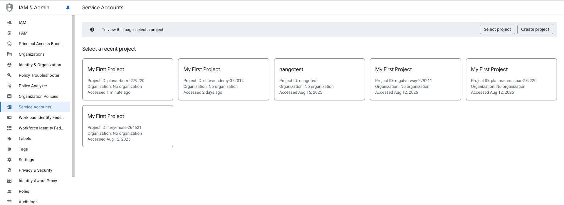 - Go to the Service Accounts page.