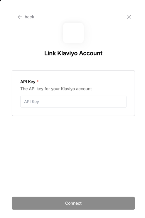 To authenticate using your API credentials, navigate to the Klaviyo authentication form. Enter your credentials as follows:
