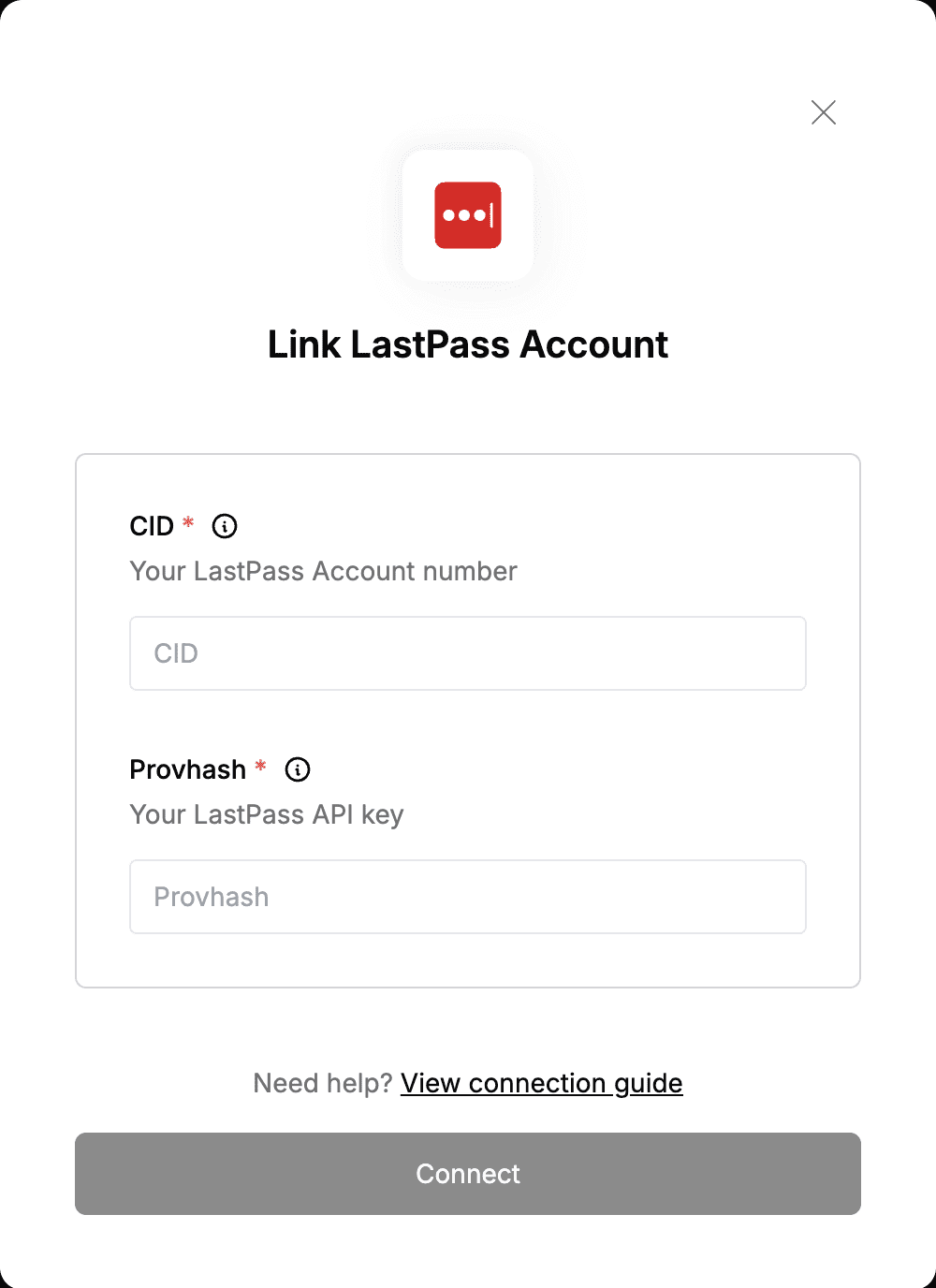 To authenticate with LastPass, you will need:- CID - The CID (Company ID) is your LastPass account number, which uniquely identifies your company.