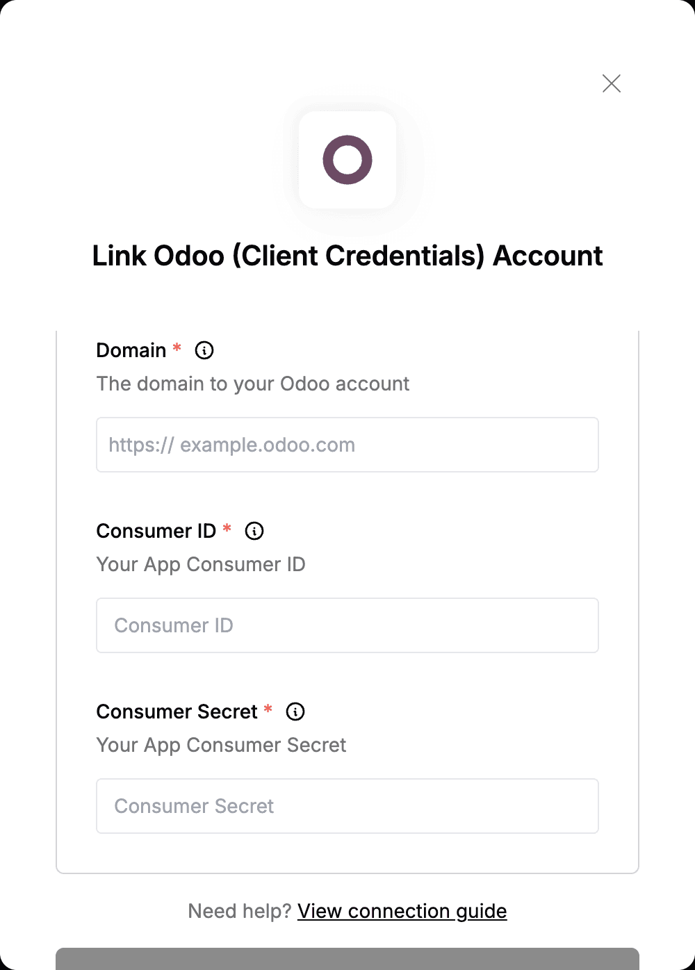 To authenticate with Odoo (Client Credentials), you need:
