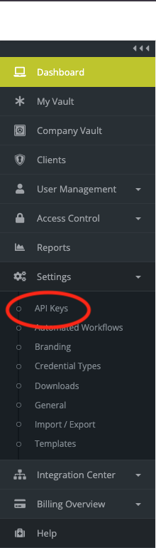- In the left pane, go to Settings > API Keys.