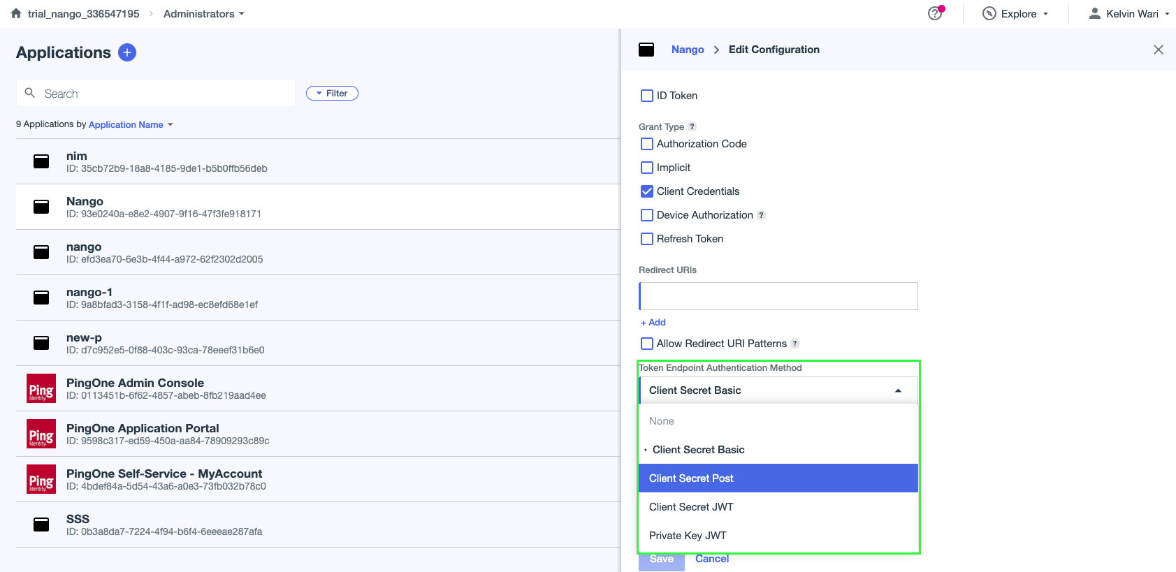 2. Navigate to the Configuration tab. From the Token Endpoint Authentication Method dropdown, select Client Secret Post and click Save.