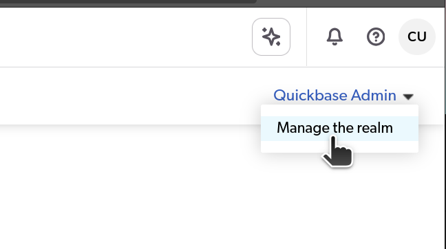 • Alternatively, as Realm Admin, Access the Admin Console from the My Apps page by clicking Quickbase Admin, then Manage the Realm.