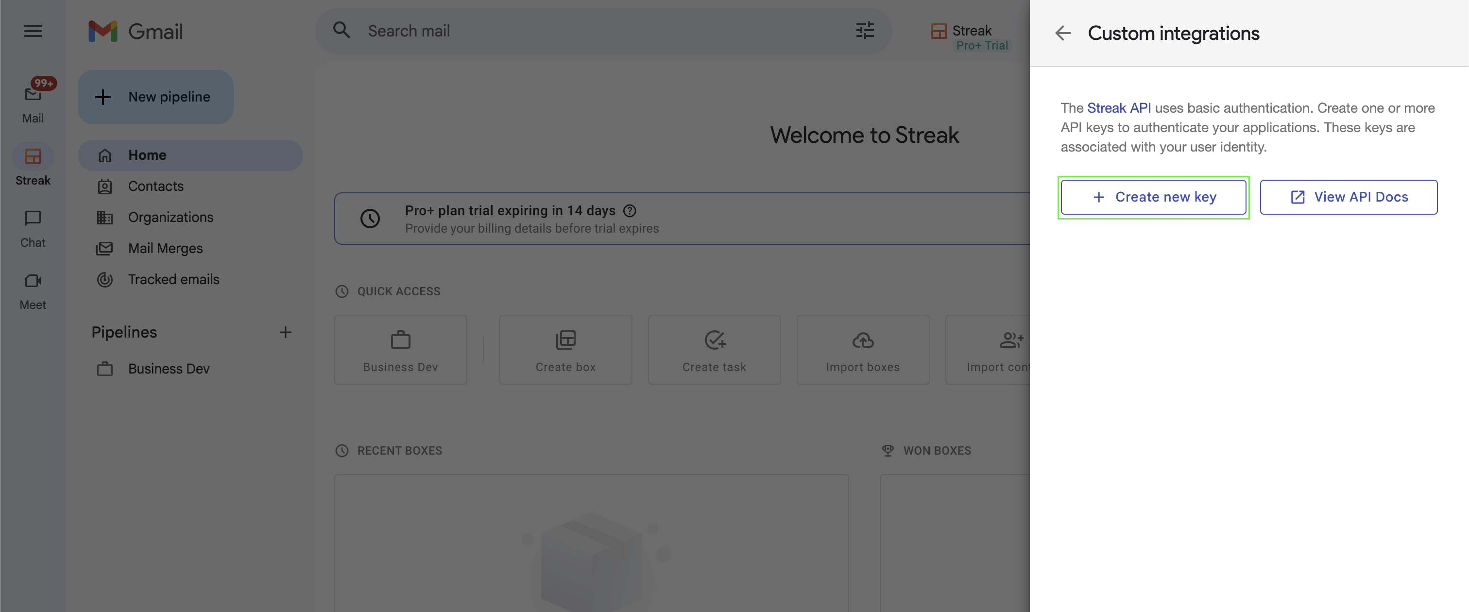 This guide will walk you through generating your API Key within Streak.