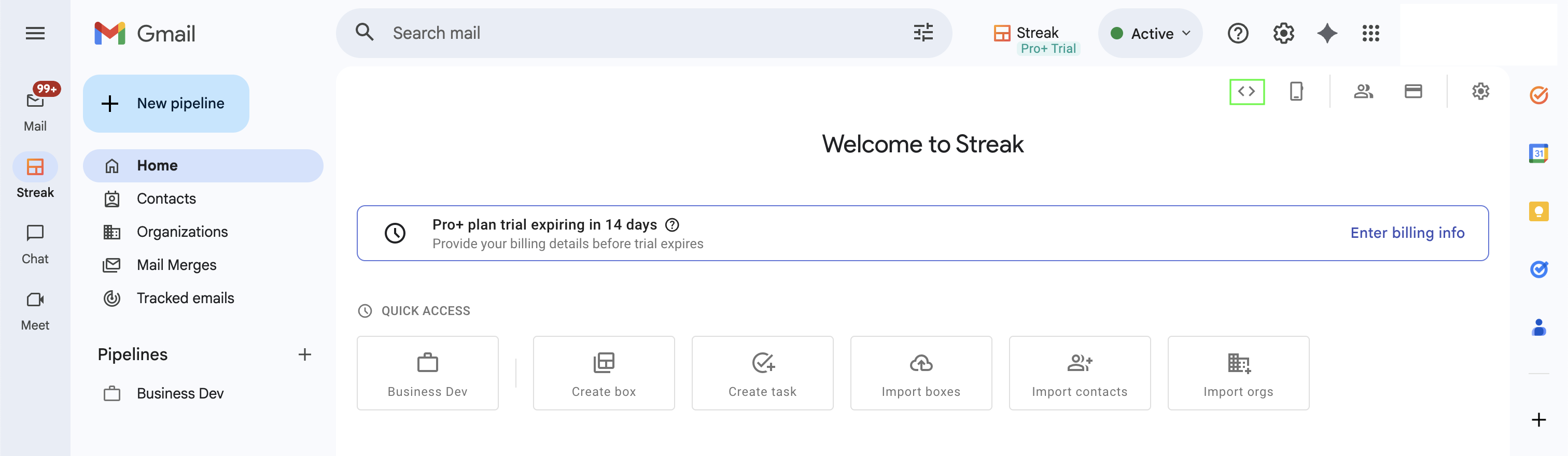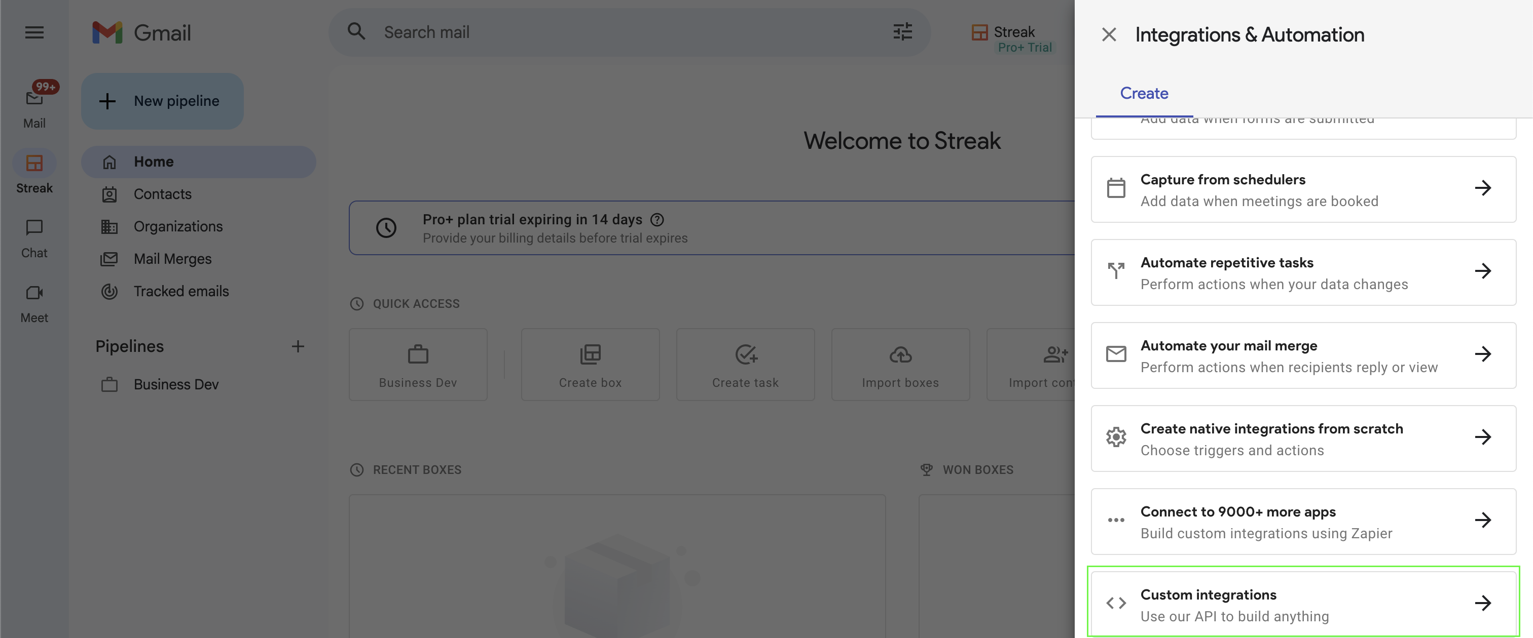 1. Navigate to Streak’s home page and click the Integrations & Automations button at the top.