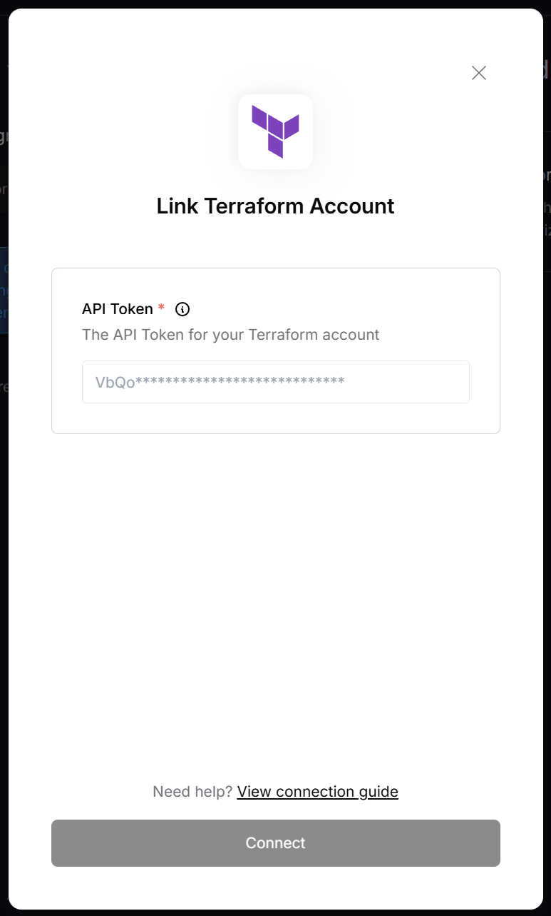 Generating an API Token following Terraform’s guide. To generate an API Token from Terraform: